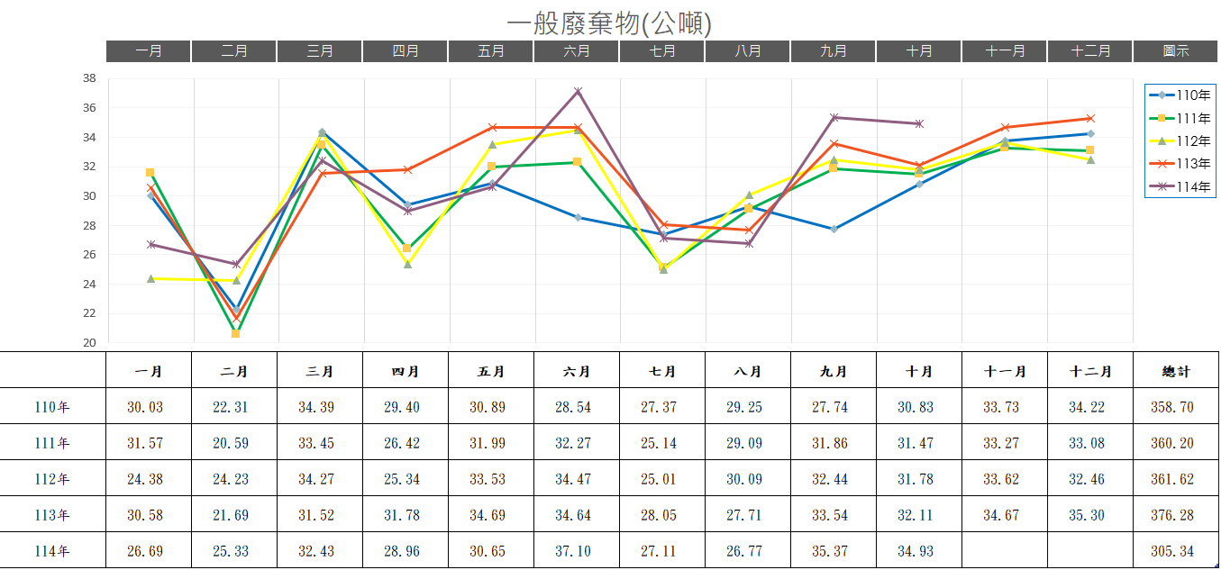 本校一般廢棄物送城西焚化廠處理,歷年處理量如下: